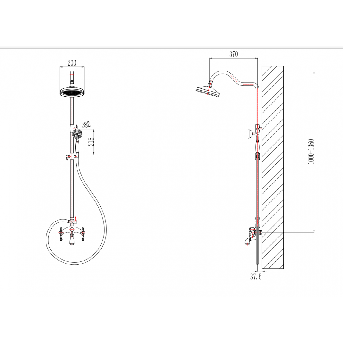 A rendszer részét képezi a kifolyóval ellátott csaptelep, így zuhanykabin és kád esetében is használható. Az időtálló SS201 rozsdamentes acél csőrendszer 25 mm-es átmérővel és 1 mm falvastagsággal stabil szerkezetet biztosít.