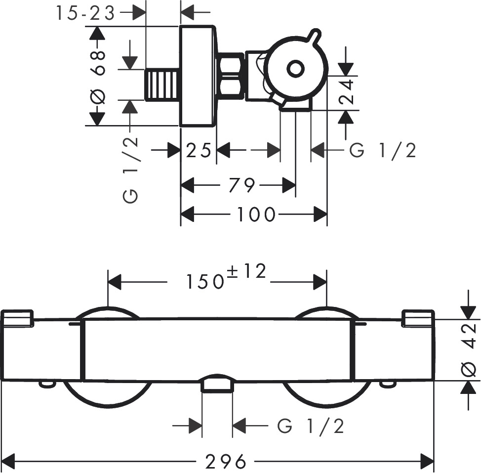 Ecostat 1001 termosztátos zuhanycsaptelep falsíkon kivüli szereléshez DN15, króm