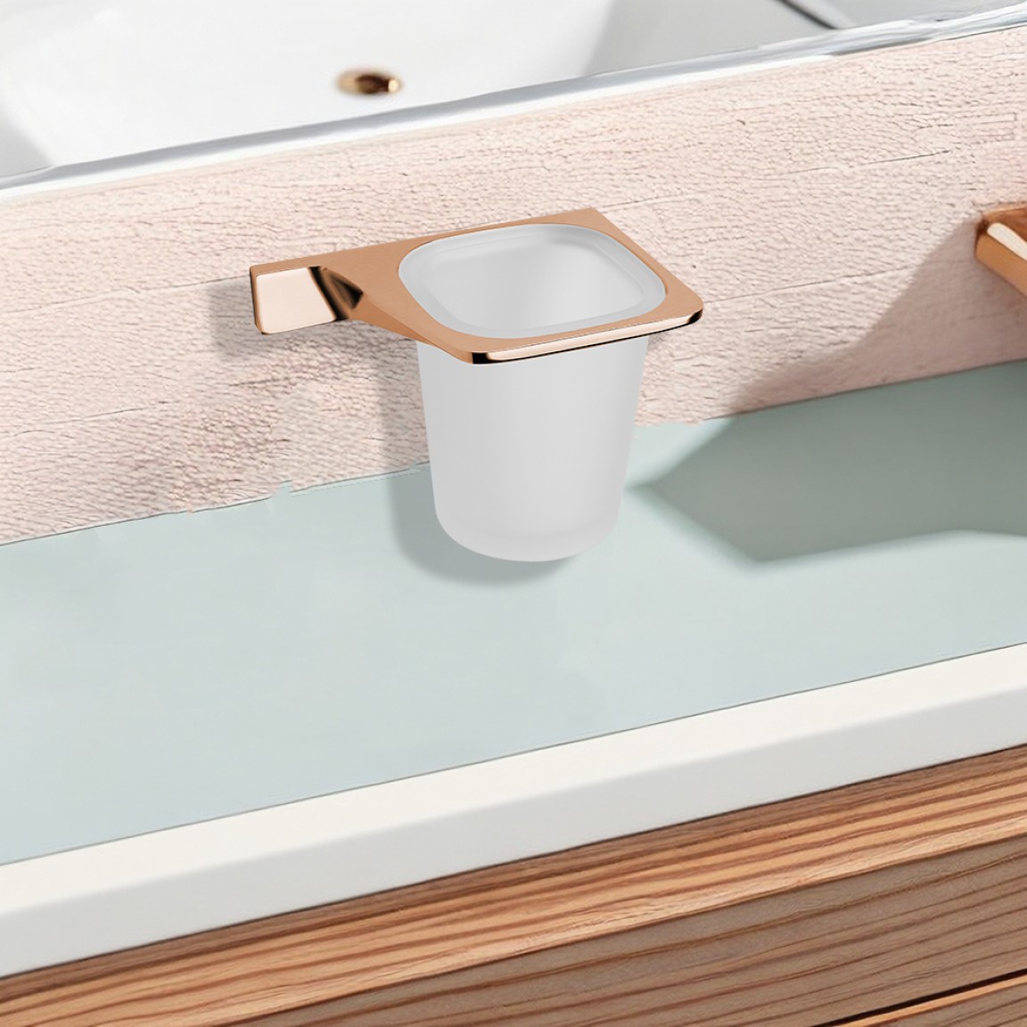 Elegáns fali pohártartó fényes Rose Gold kivitelben, prémium sárgarézből. Praktikus és dekoratív kiegészítő a modern fürdőszobába, 25 év garanciával.