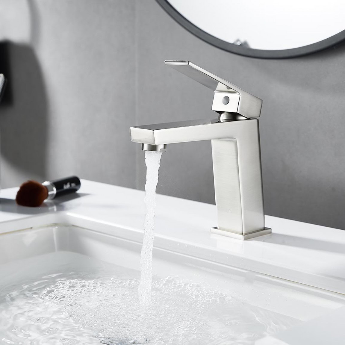 Letisztult, modern mosdócsaptelep egykaros kivitelben, elegáns szálcsiszolt nikkel (brush nickel) színben, kerámiabetétes keverővel és Neoperl perlátorral.