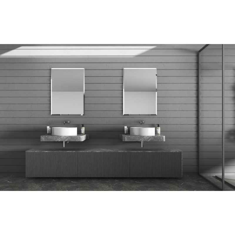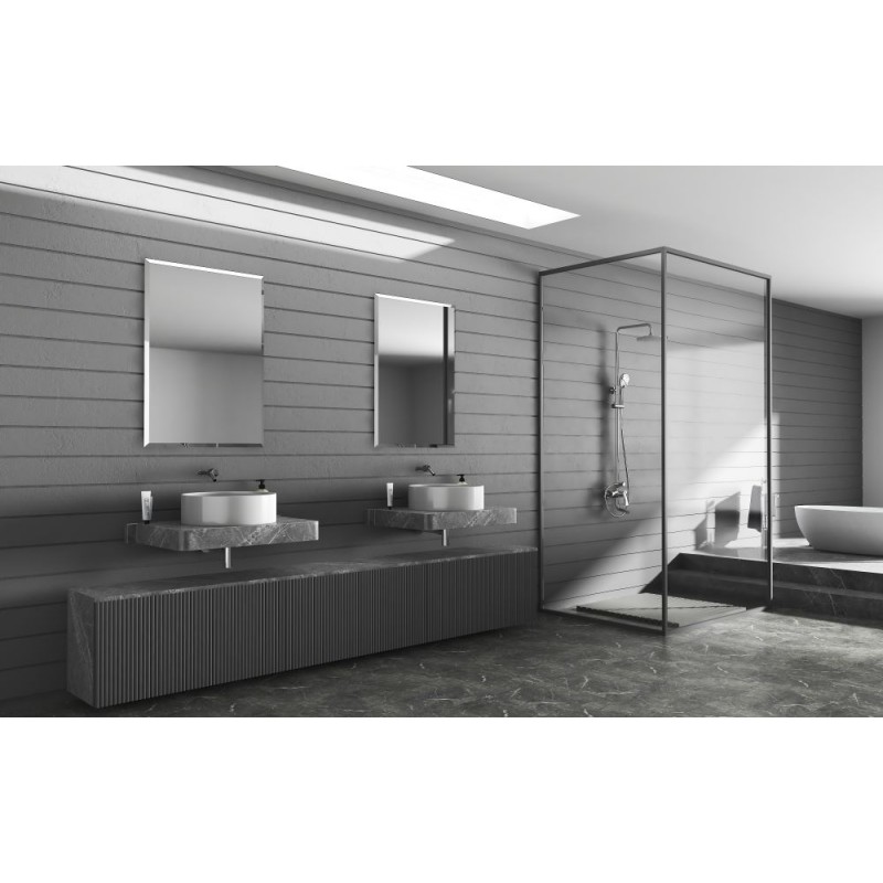 Egyszerű, elegáns kivitelű fürdőszobai tükör 60 x 80 cm méretben, függőleges és vízszintes felszerelési lehetőséggel.