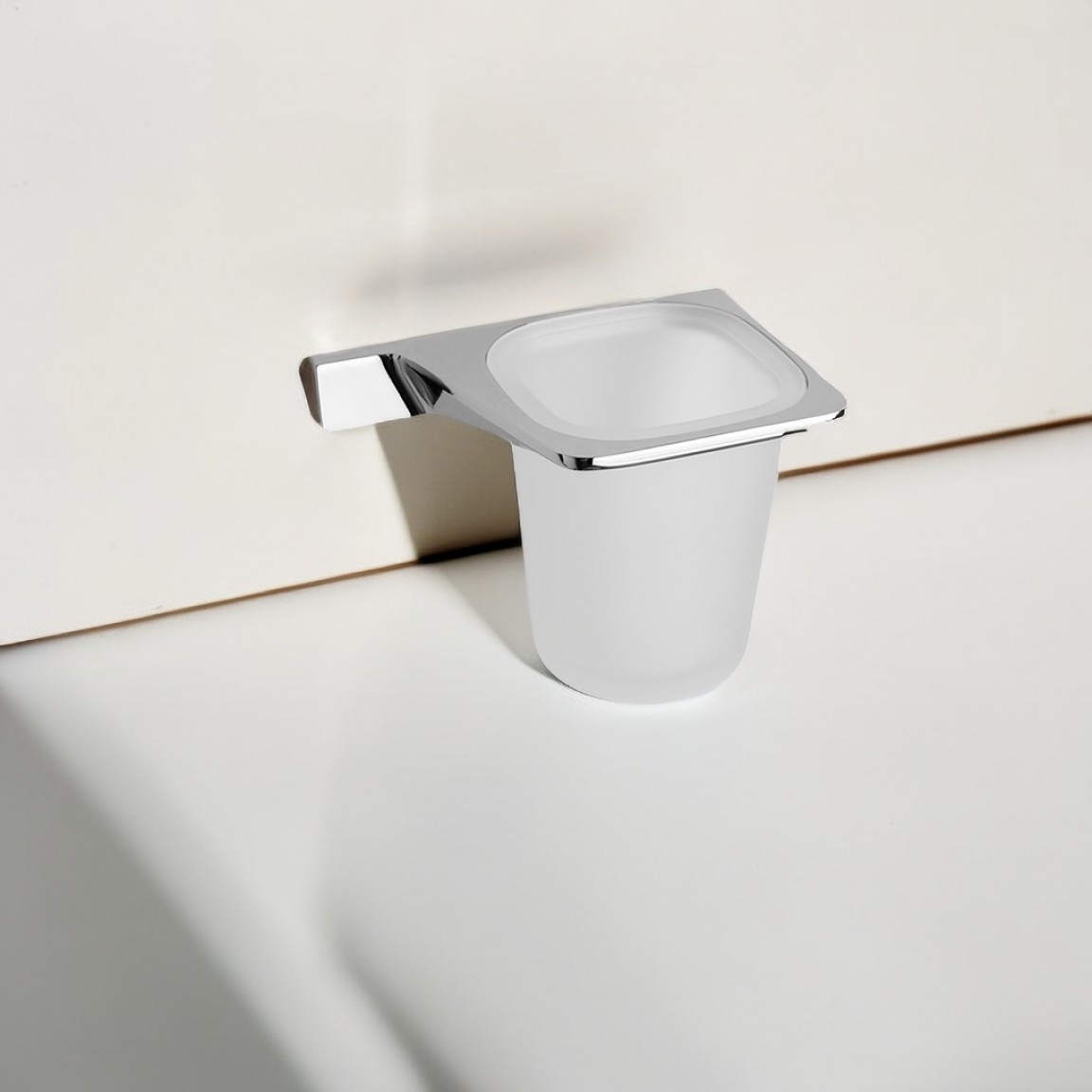 Stílusos fali pohártartó fogkefékhez vagy egyéb fürdőszobai eszközökhöz. Fényes ezüst színben, tartós sárgarézből, 25 év garanciával.