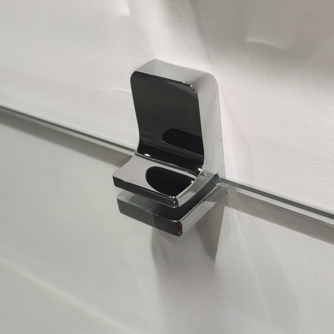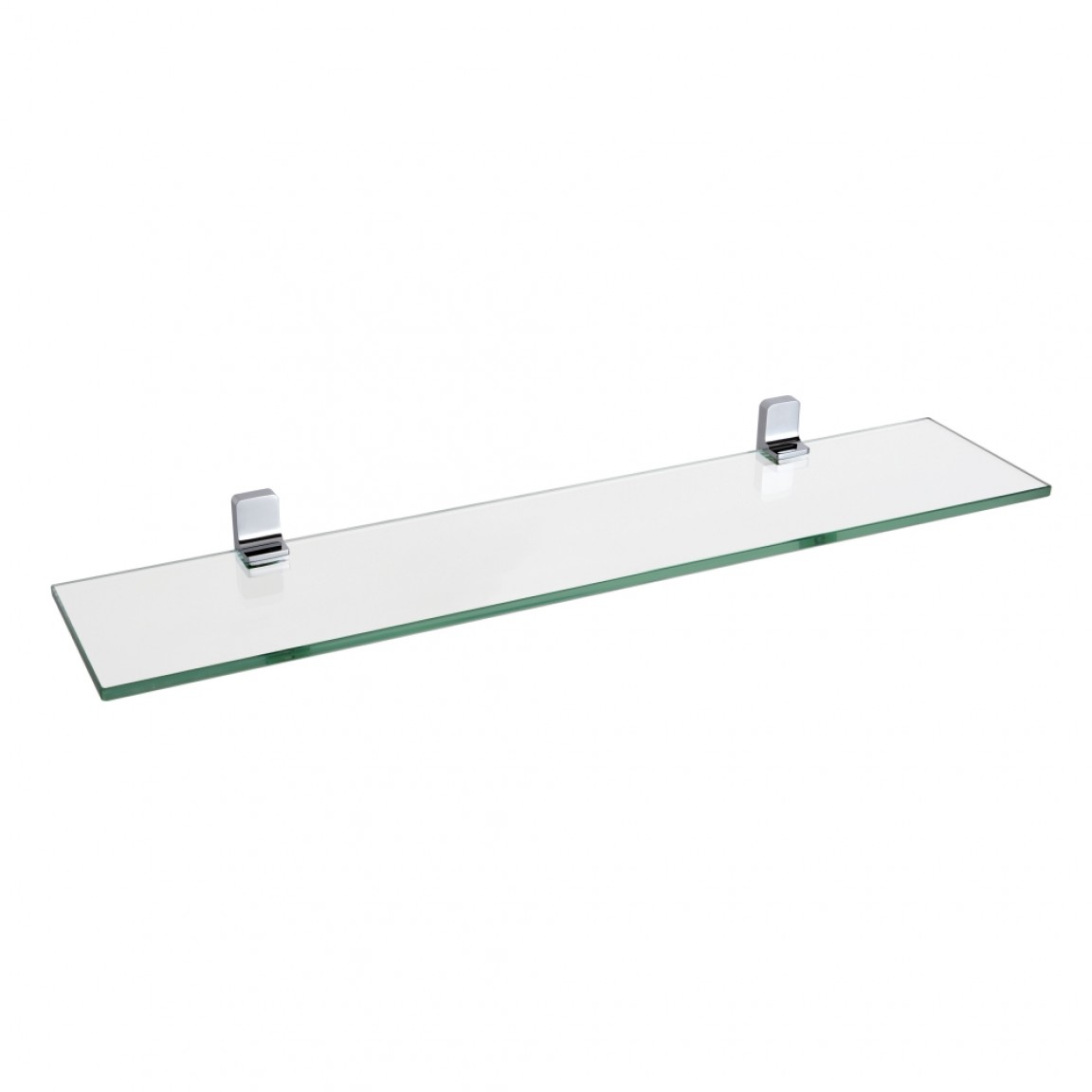Modern, falra szerelhető üvegpolc fényes ezüst rögzítésekkel. Tartós sárgaréz tartószerkezet, 60 cm hosszúság, 25 év garanciával.