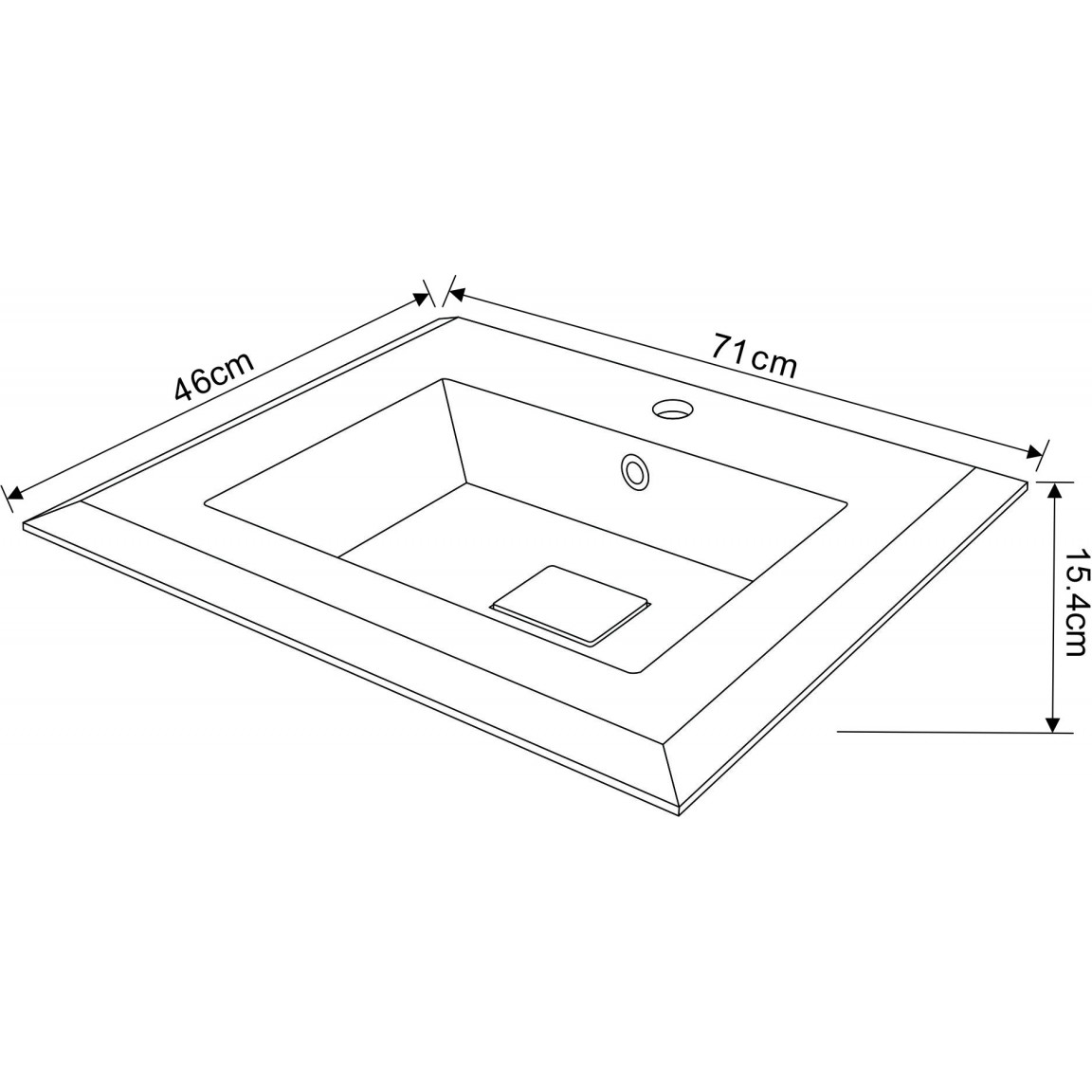Stílusos, fényes fehér felületű 71 cm széles műgyanta mosdó beépített túlfolyóval és csaplyukkal. Bútorra szerelhető, kompakt kialakítás.