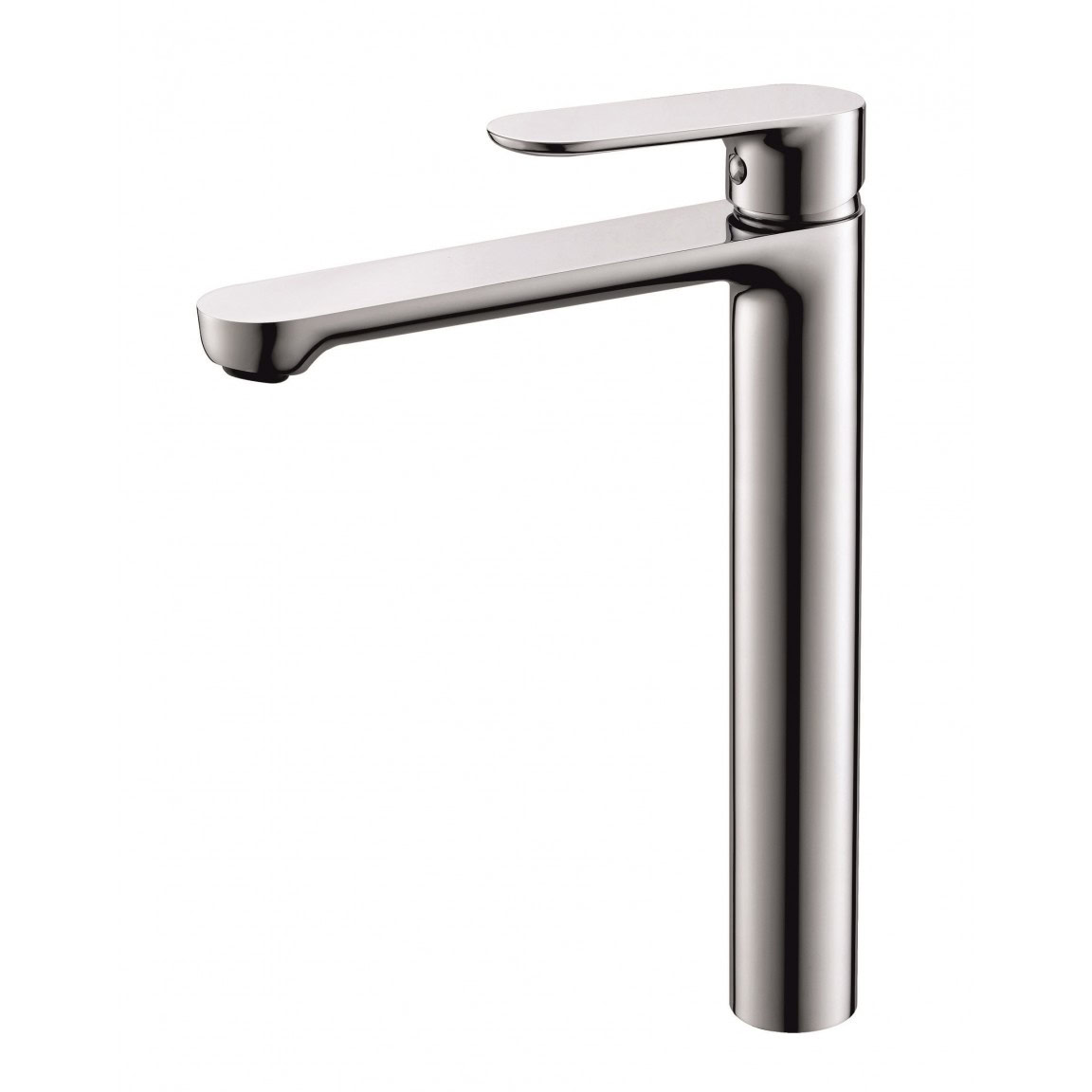 Modern kialakítású, magas mosdócsaptelep rozsdamentes acélból, letisztult forma és praktikus használat egyben.