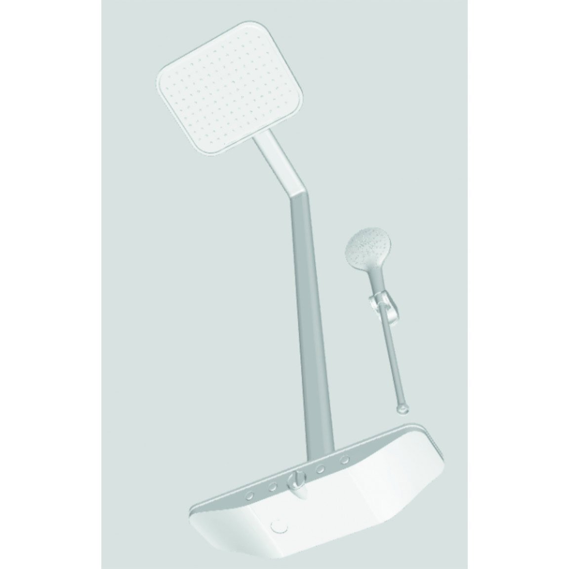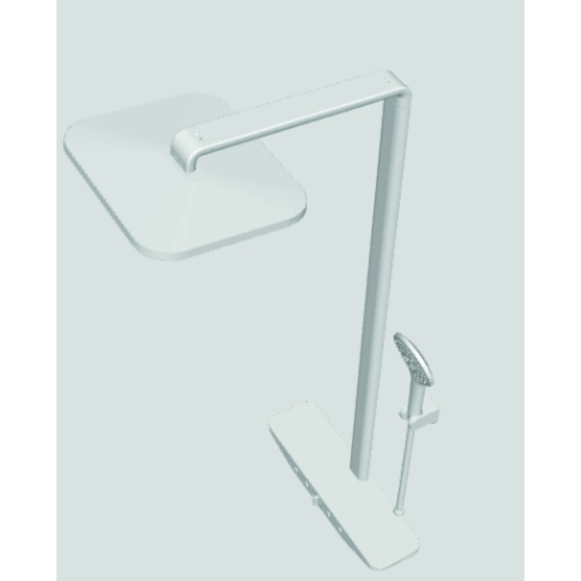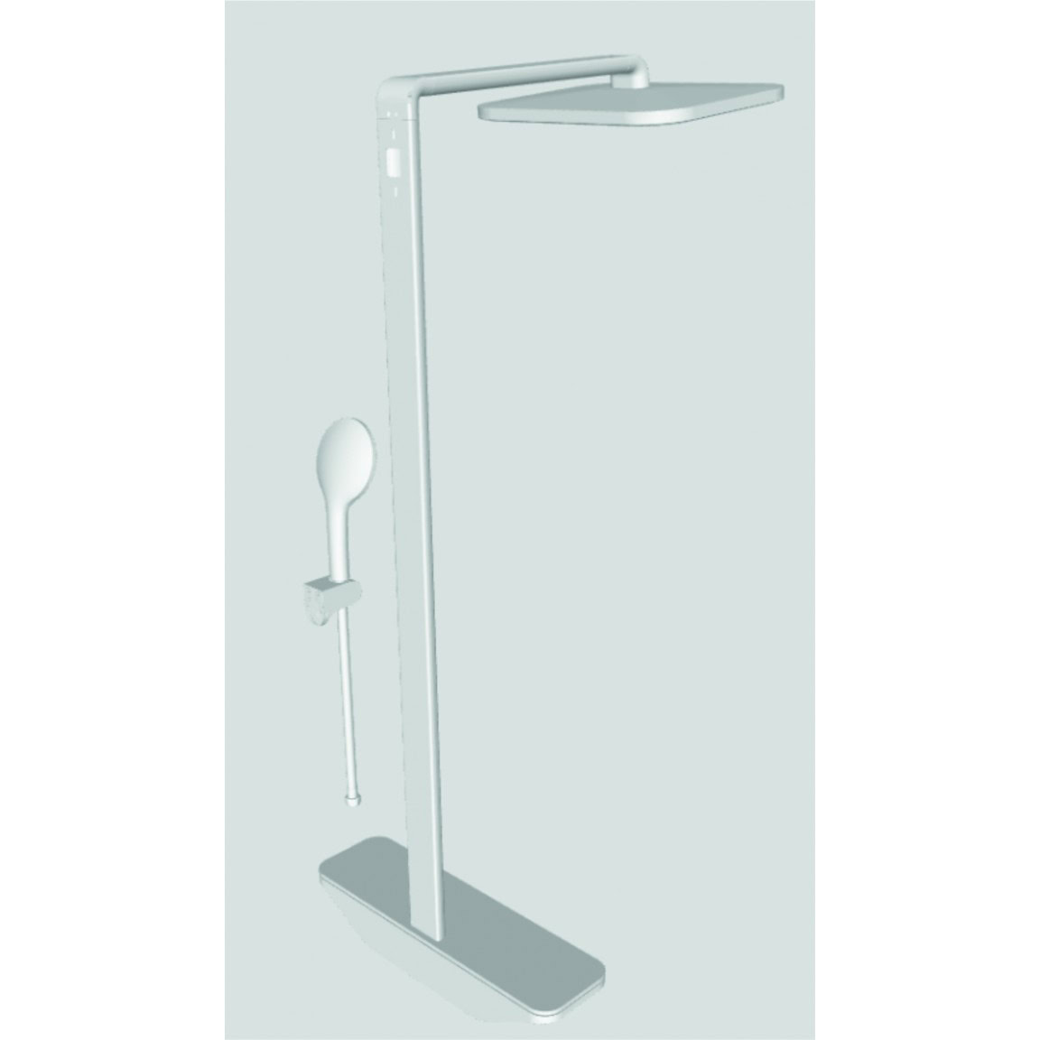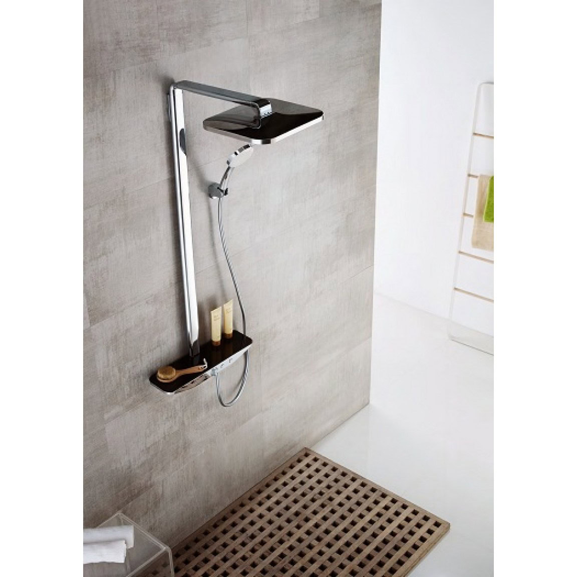 Luxuskategóriás, rozsdamentes acélból készült állítható zuhanyrendszer termosztátos réz csapteleppel, extra nagy fejzuhannyal, háromfunkciós kézizuhannyal és szatén felületű szilikon gégecsővel.