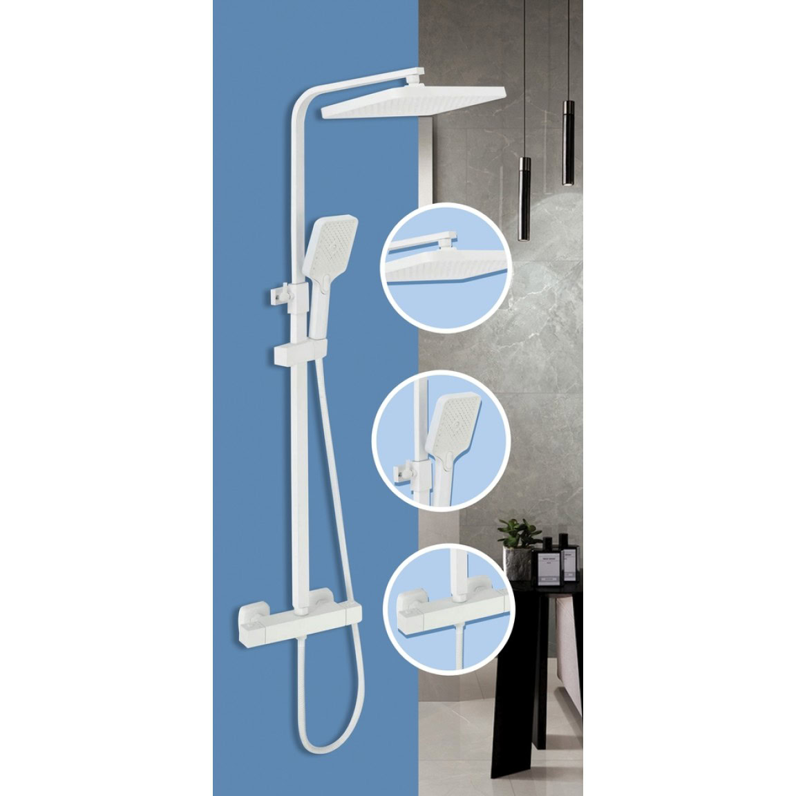 ICT 6222W DAISY termosztatikus zuhanyszett – matt fehér kivitel