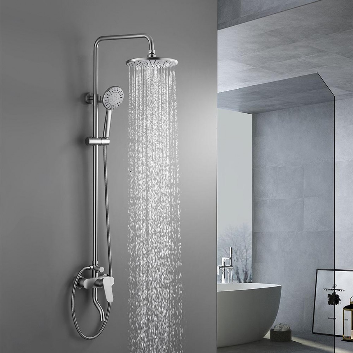 A Shower set ICT 6328BS egy prémium minőségű zuhanyrendszer, amely egyesíti a modern dizájnt és a megbízható funkcionalitást. A szett tartalmaz egy felső esőztető zuhanyt, egy 5 funkciós kézizuhanyt, egy 1,5 méteres rozsdamentes acél zuhanycsövet, valamint egy SS304 rozsdamentes acél csaptelepet Sedal 35 mm-es kerámia betéttel.