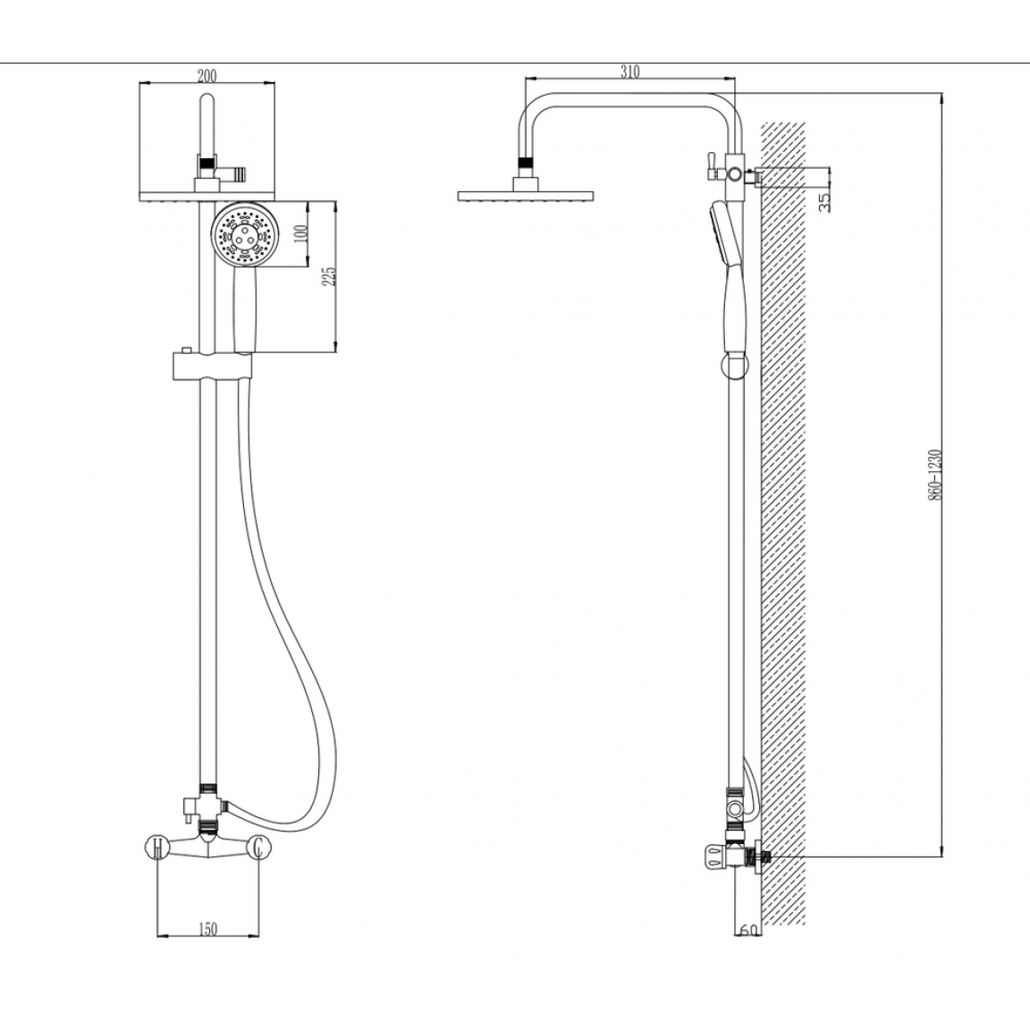 A zuhanycső tartós SS201 rozsdamentes acélból készült, 1 mm falvastagsággal és Ø24 mm átmérővel. A felső, esőztető zuhanyfej ABS műanyagból készült, egyfunkciós kivitelben. A rendszer kifolyóval nem rendelkezik, így ideális azok számára, akik kizárólag zuhanyzási célra keresnek modern megoldást.