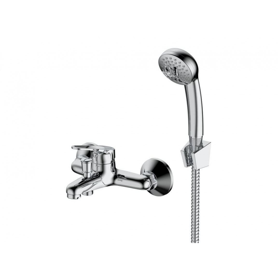 Elegáns, egykaros csaptelep kádhoz és zuhanyhoz, komplett zuhanyszettel: kézizuhany, gégecső és fali tartó. Tartós sárgaréz test, 35 mm-es kerámia patron, fényes króm borítással.