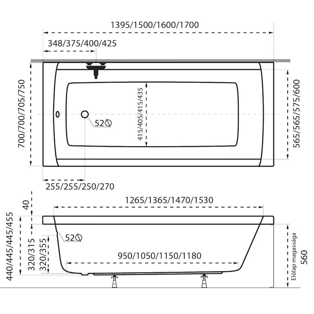 - AZ ALAPÁR A 150×70-ES KÁDRA VONATKOZIK!