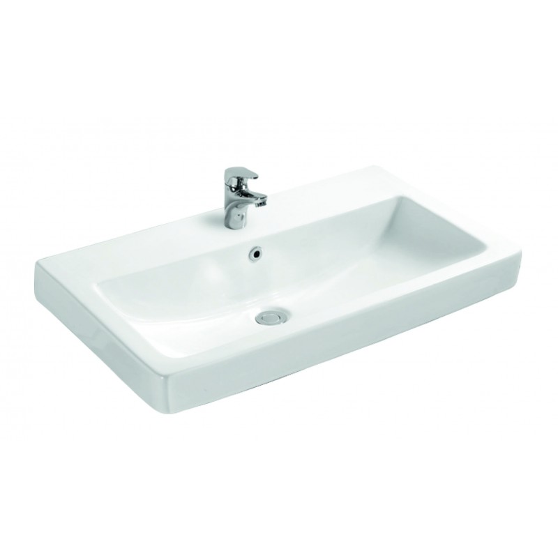 Modern, bútorra szerelhető mosdókagyló fehér porcelánból. Letisztult forma, időtálló kivitel.