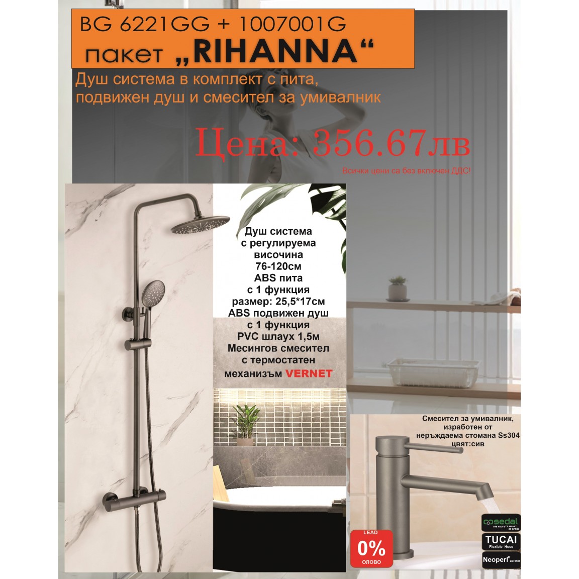 RIHANNA 6221GG + 1007001G 2 az 1-ben esőztető zuhanyszett (csaptelep nélkül)