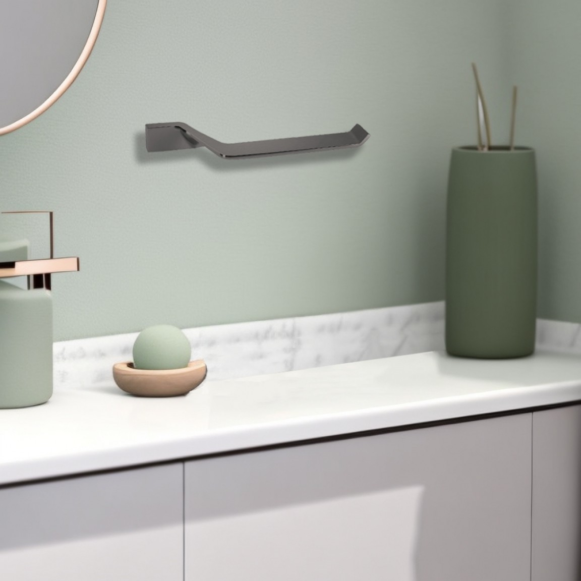 Stílusos és modern toalettpapír-tartó prémium minőségű sárgarézből, fényes GunMetal színben. Falra szerelhető kialakítás, hosszú élettartam, 25 év garanciával.