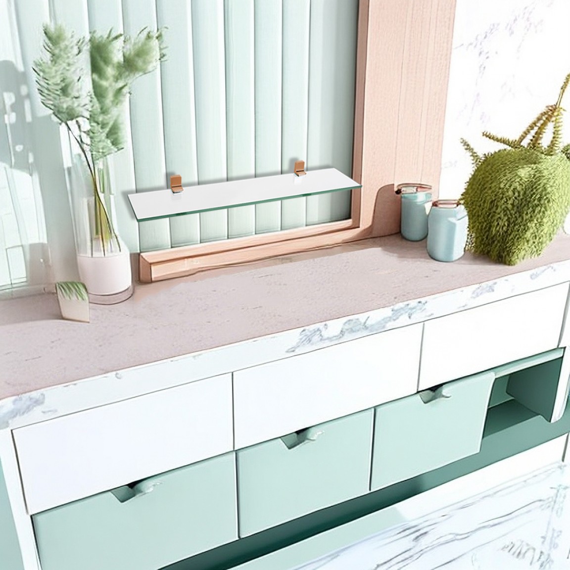 Az edzett üvegpolc 60 cm szélességgel ideális helyet biztosít kozmetikumoknak, piperecikkeknek vagy dísztárgyaknak. A falra szerelhető kivitel helytakarékos megoldást kínál, a rögzítőelemek a csomag részei, így a felszerelés gyors és egyszerű.