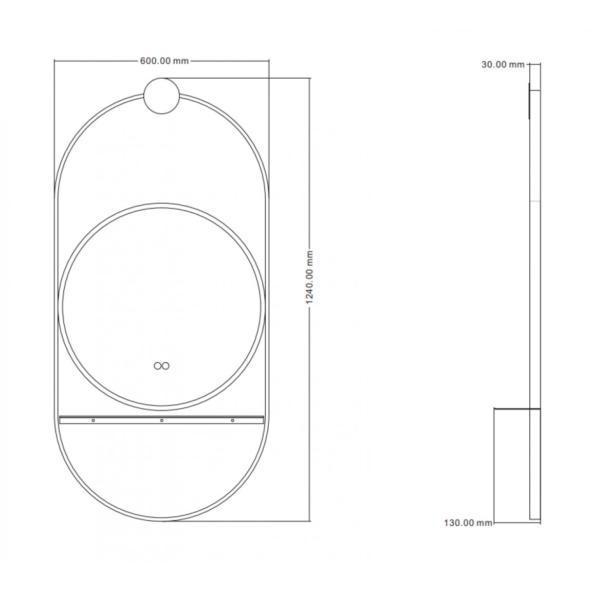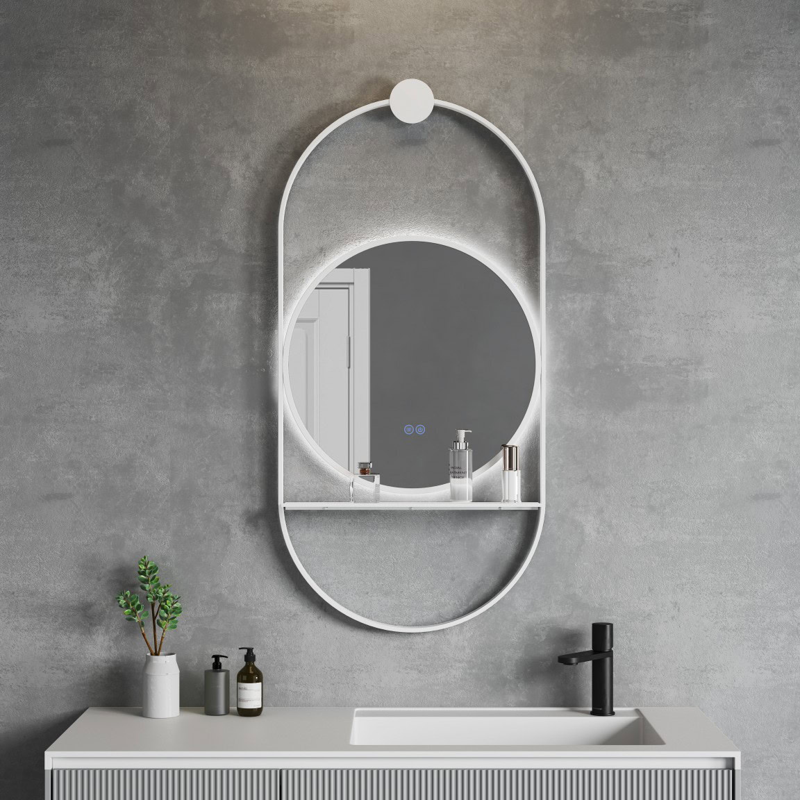 A tükör praktikus kialakítását egy darab beépített polc egészíti ki, amely lehetővé teszi a legszükségesebb piperecikkek elhelyezését.