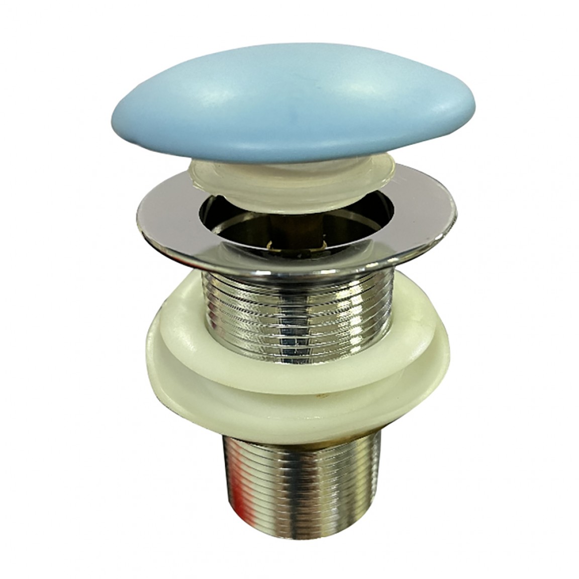 Modern megjelenésű, matt kék porcelán fedéllel ellátott pop-up leeresztőszelep túlfolyó nélküli mosdókhoz. Elegáns választás egyedi fürdőszobai stílushoz.