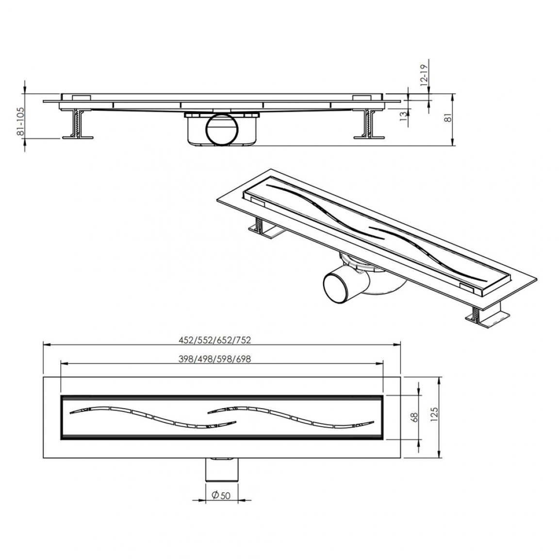 A rács polírozott felületű, míg az alap szürke színű, modern hatást kölcsönözve a fürdőtérnek. A 70 cm hosszúságú kivitel ideális standard méretű zuhanyzókhoz.