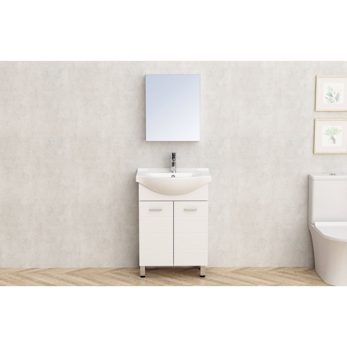 A Tuscany fürdőszobai szekrény stílusos, fényes felületű PVC kialakítással, két ajtóval és lágyan záródó zsanérokkal érkezik. A csomag tartalmazza a NEW 6040 kerámia mosdókagylót is. Kompakt mérete ellenére elegáns és praktikus megoldás.
