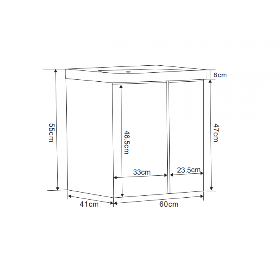 A szekrény két ajtóval rendelkezik, melyek csendes záródású DTC zsanérokkal működnek, így garantálják a kényelmes és halk használatot. A mosdó gyárilag nincs kifúrva, így lehetőség nyílik egyedi megoldások kialakítására. A termék lapra szerelten, kartondobozba csomagolva kerül kiszállításra.