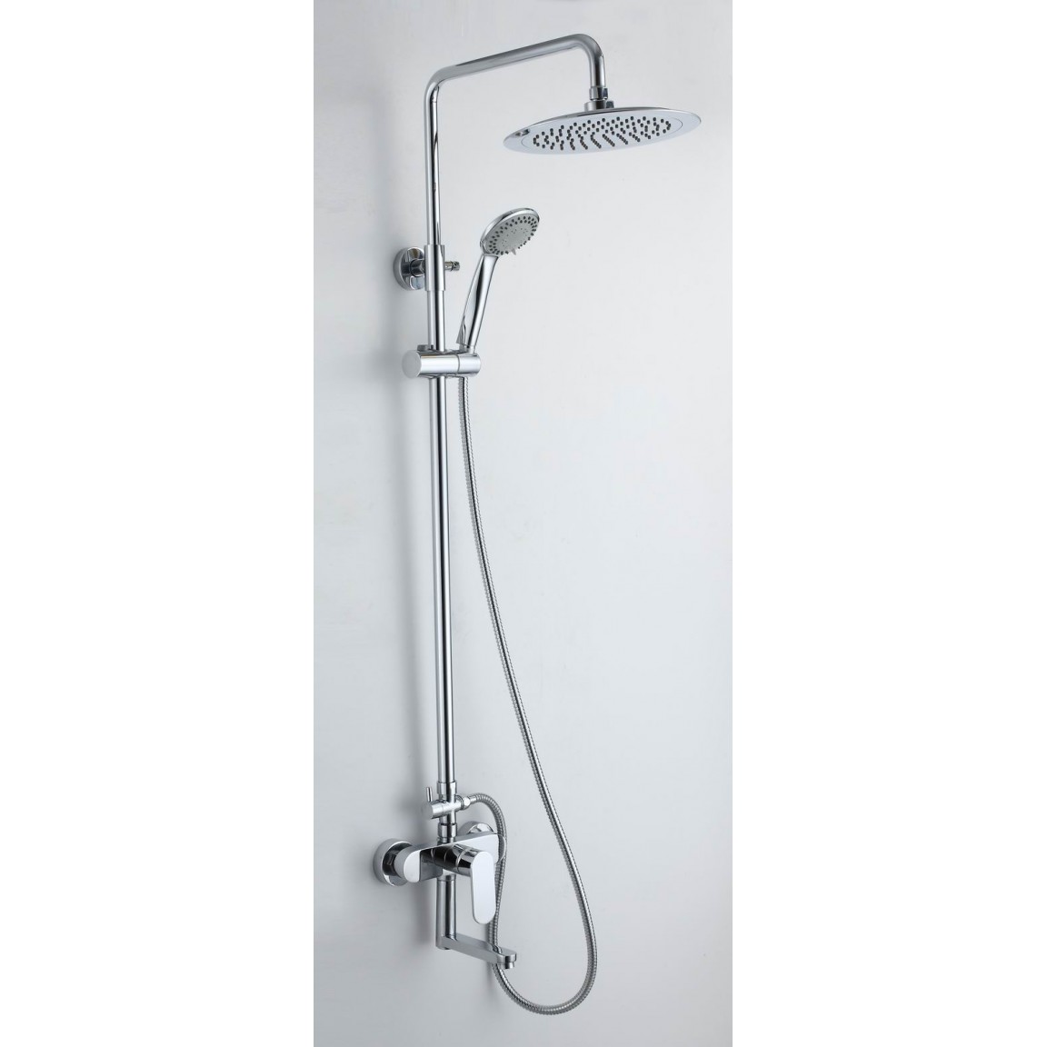 Állítható magasságú, teleszkópos zuhanyrendszer modern formavilággal. Tartalmaz felső zuhanyfejet, kézizuhanyt, váltót, csaptelepet és mozgatható kifolyót. Strapabíró rozsdamentes acél kialakítás, 5 év garanciával.